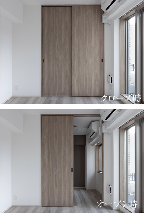 スライディングドアを開閉することで、ライフスタイルに合わせて自由にこだわりのある暮らしを演出できます。