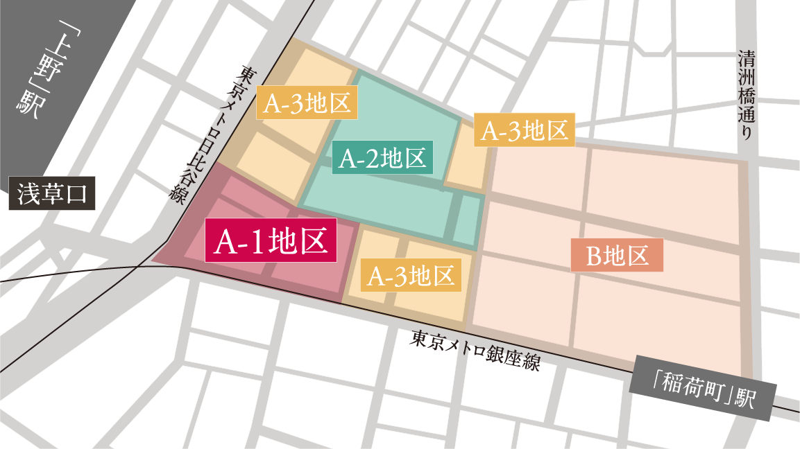 「東上野四丁目・五丁目地区地区計画」では、適正な土地利用を誘導し、公共公益施設の再編や大規模な敷地機能の更新などにあわせた段階的なまちづくりが計画中。上野駅前のA-1地区では「東上野四丁目A-1地区再開発準備組合」が設立。2030年代半ばの完成を目指し、上野と浅草をつなぐ浅草通りの玄関口として、商業、文化、観光、防災機能などを備えた複合拠点が誕生する予定です。