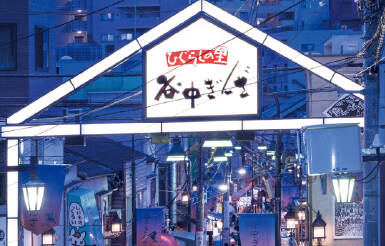 「夕やけだんだん」とよばれる夕日の名所の眼下に広がる「谷中ぎんざ商店街」。昔ながらの個人商店を中心に、様々な業種約60店舗が全長170メートルほどの短い通りに軒を連ねています。昭和20年頃に自然発生的に生まれた商店街は、現在「東京下町レトロ」として国内外から多くの人々が訪れています。