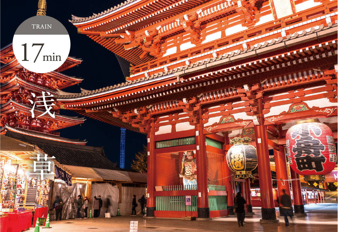 歴史ある神社仏閣が建ち並び、江戸時代から観光地として栄えてきた「浅草」。雷門がある「浅草寺」や、日本の食文化が感じられる和菓子や食べ歩きグルメ、芸人が活躍する「浅草演芸ホール」など、江戸時代の趣を感じられるレトロな街並みは、今では国内有数の観光の拠点となっています。