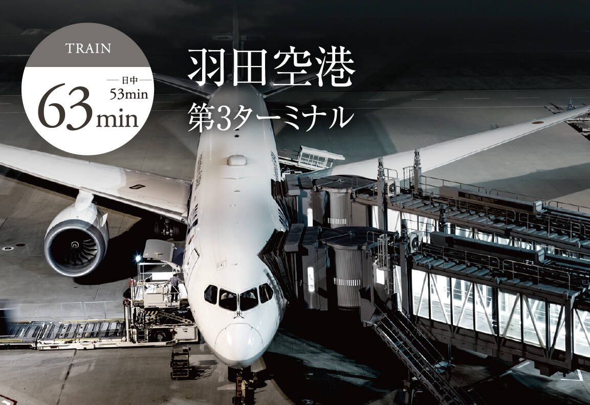 - 羽田空港第3ターミナル:京成本線利用、青砥 で京成押上線快速特急に乗換。日中も同じ経路。