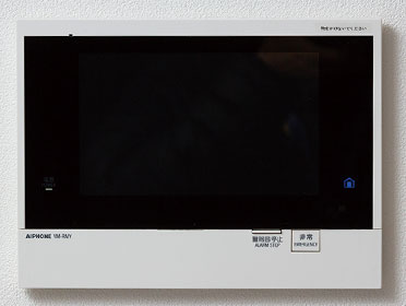 来訪者をカラーモニターで確認でき、ボタン操作で簡単に会話可能な受話器のないハンズフリータイプのインターホンを採用しています。また、万一の際、インターホンの非常ボタンを押すと、異常発報が管理室を経由し、警備会社に自動通報されます。