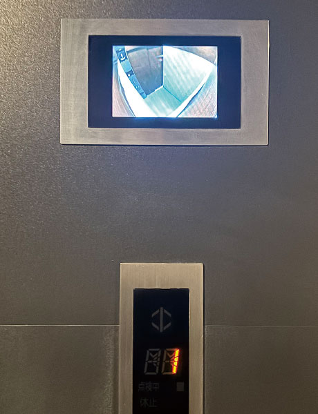 エレベーターには内部を撮影する防犯カメラを設置しました。撮影された映像はリアルタイムで1階のモニターに映しだされます。